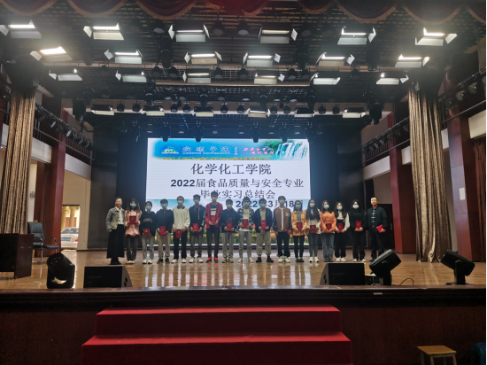 2022年03月1 8日上午,bwin必赢在集团礼堂举行了2022届毕业实习总结大会。bwin必赢经理杨莉莉、书记喻辉、学院参加实习工作的赵荣飞老师、曹彬老师、王胜碧老师、李文秀老师、任琴会老师等,2022届化学班、化学工程与工艺班、食品质量与安全班全体员工参加了此次总结大会。会议由赵荣飞老师主持。